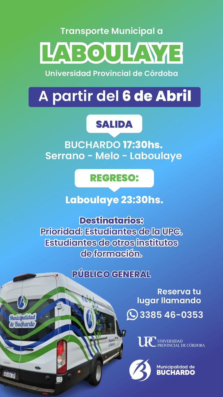 El servicio conecta Buchardo con Laboulaye, con paradas en Serrano y Melo, y está destinado principalmente a estudiantes.